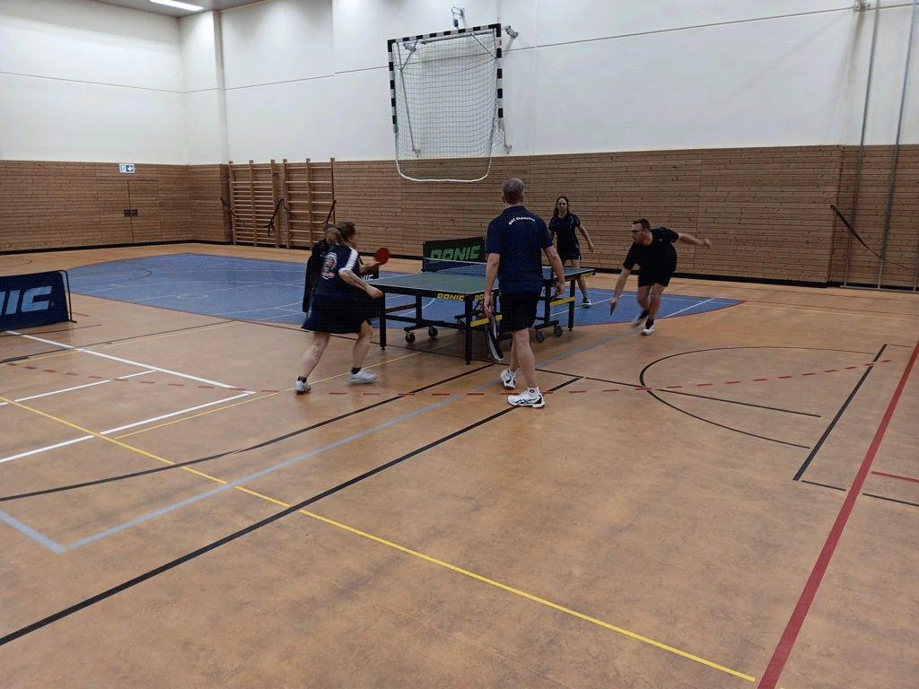 Ab 14.00 Uhr hatten sich neben einigen Zuschauerinnen und Zuschauern insgesamt zehn Nachwuchsspielerinnen – darunter mit Mae Graf und Romy Gvenn zwei französische Austauschschülerinnen – und Nachwuchsspieler sowie 14 Erwachsene zum Tischtennis-Wettstreit eingefunden. Die Jugendlichen wurden dazu in zwei Gruppen eingeteilt und traten nach dem Modus „Jede/r gegen Jede/n“ gegeneinander an. Die jeweils beiden Gruppenersten erspielten im Halbfinale die Finalisten. Tischtennis-Ortsmeister wurde Niklas Draut, Emil Koch belegte den zweiten Platz und Daniel Steinhoff sowie Noah Schröder wurden Dritte. Die beiden französischen Gäste wurden Siebte (Mae Graf) bzw. Neunte (Romy Gvenn). Eine Doppelkonkurrenz wurde nicht ausgetragen.